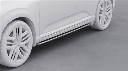 Het running board bestaat uit een opstap met een oppervlak van exclusief geborsteld roestvrij staal en een antisliplaag van rubber, en dat levert een prachtig patroon op.