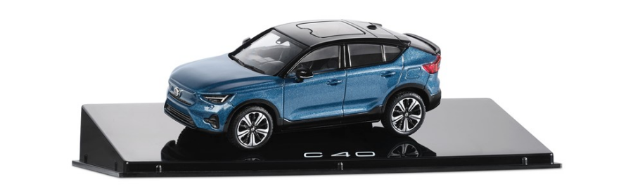 Scandinavisch design en vakmanschap in miniatuur. Dit gegoten schaalmodel (1:43) van de Volvo C40 wordt geleverd met perfect weergegeven binnen- en buitendetails. Het schaalmodel wordt compleet geleverd met een displaystandaard en is verkrijgbaar in Fjord Blue en Sage Green.